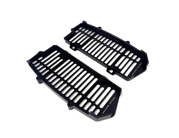 Este producto NO es fundido. Algunos fabricantes reducen costes produciendo piezas de fundición y posteriormente mecanizándolas, pero nuestro protector de radiador está completamente mecanizado por CNC a partir de una placa maciza de aluminio 6061 T6.